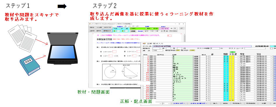 手書き解答用紙をスキャナーで読み込み解答文字を認識して採点・成績処理を行います。