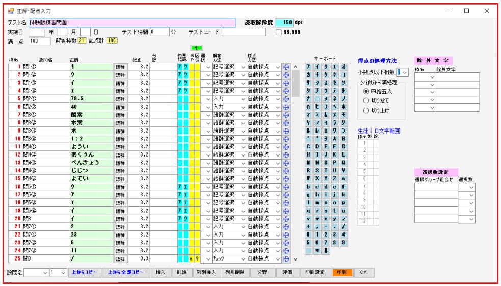 正解、配点など評価に必要なデータを入力します。n